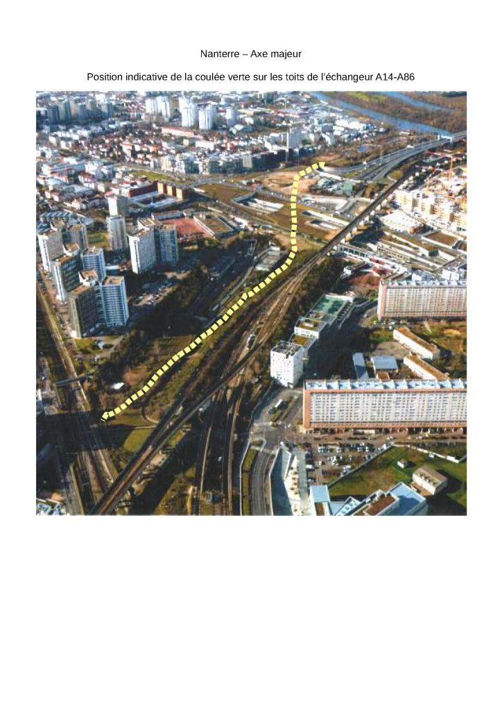 De plus, le PLU précise, dans l’OAP, orientation d’aménagement et de programmation du secteur de l’échangeur A14-A86, les vocations de cette coulée verte à créer sur l’axe Seine Arche :