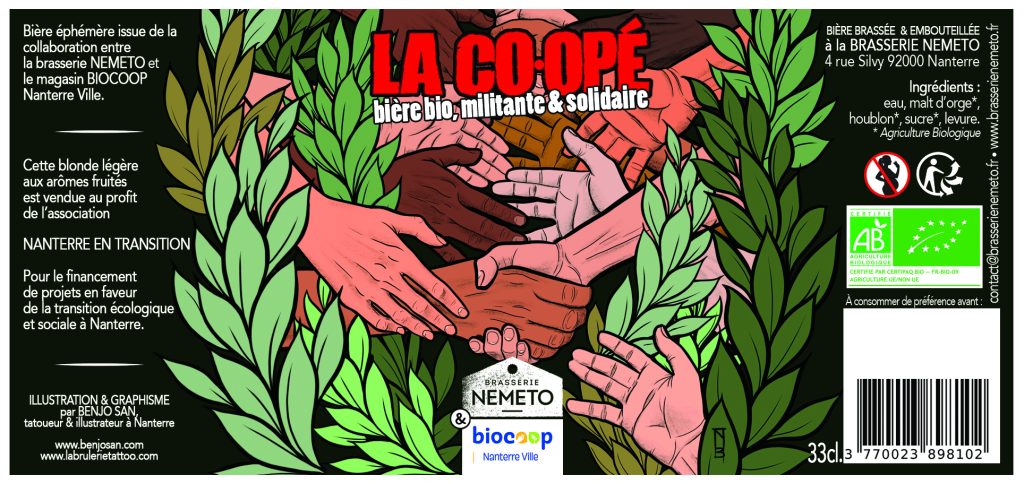 - Toujours l’excellente bière La Co-opé vendue en exclusivité chez Biocoop au profit de notre association